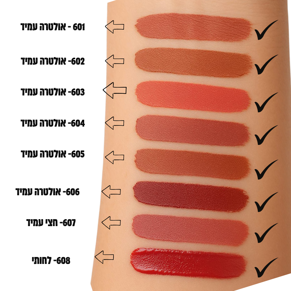 ✔ 8 שפתונים 6 בגווני מאט מחמיאים 1 חצי עמיד חצי לחותי ואחד לחותי,